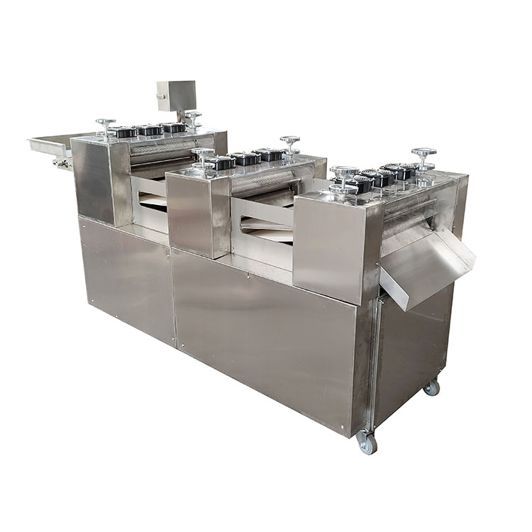 三聯(lián)波紋機(jī)是用于壓松魚片產(chǎn)品的設(shè)備,在傳統(tǒng)波紋機(jī)基礎(chǔ)上改進(jìn)后,本設(shè)備變頻調(diào)整轉(zhuǎn)速,操作簡單,加工出來的產(chǎn)品蓬松度更好,品相美觀。進(jìn)料效果好,吃起來口感綿柔,不粘牙齒。